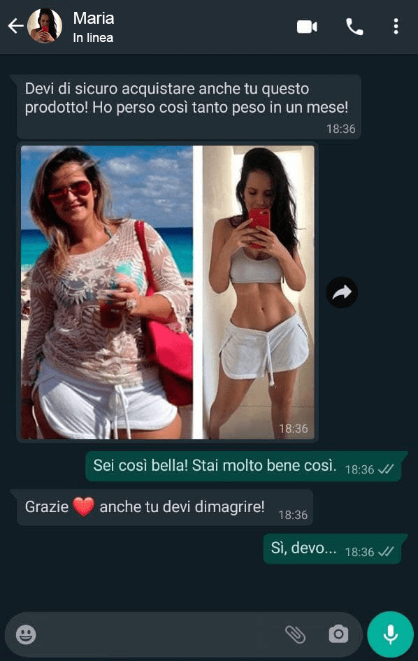 Daniela BellizziQuesto è un grande prodotto! Sono riuscita ad ordinarlo con uno sconto! Mi sento benissimo e ho già perso un paio di chili. La verità è che dicono che la scienza americana è molto più avanti e fanno solo il meglio. Questa è una prova!08:34 -